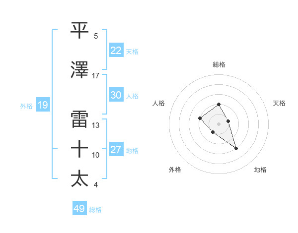平澤 雷十太さんを姓名の画数から五運を鑑定