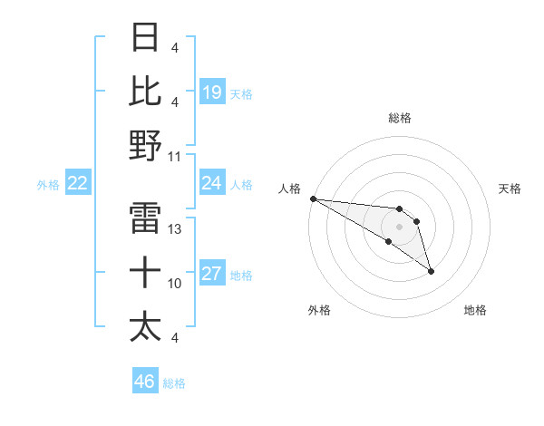 日比野 雷十太さんを姓名の画数から五運を鑑定