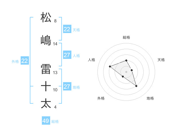 松嶋 雷十太さんを姓名の画数から五運を鑑定