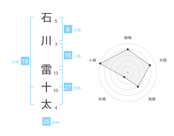 石川 雷十太さんを姓名の画数から五運を鑑定