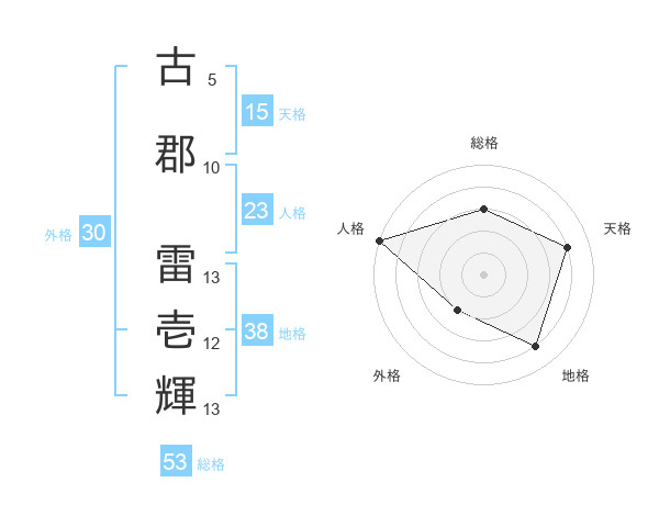 古郡 雷壱輝さんの総格は53画の3点!