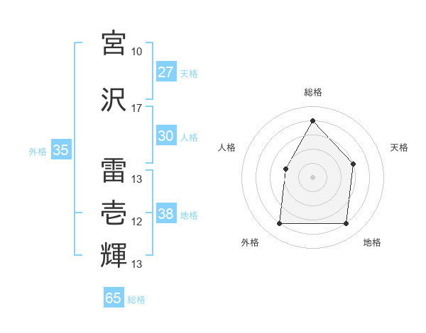 宮沢 雷壱輝さんを姓名の画数から五運を鑑定