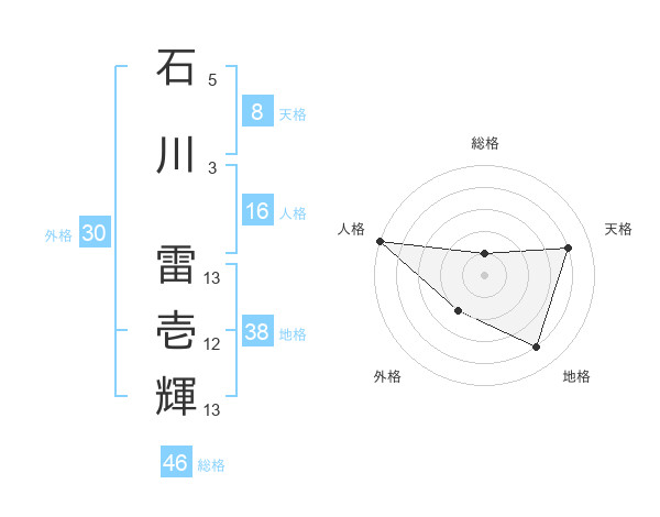 石川 雷壱輝さんを姓名の画数から五運を鑑定