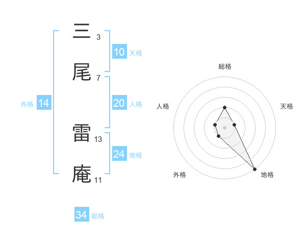 三尾 雷庵さんを姓名の画数から五運を鑑定