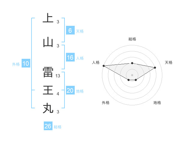 上山 雷王丸さんの総格は26画の2点