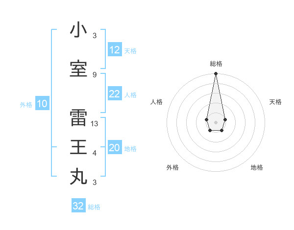 小室 雷王丸さんの総格は32画の5点!