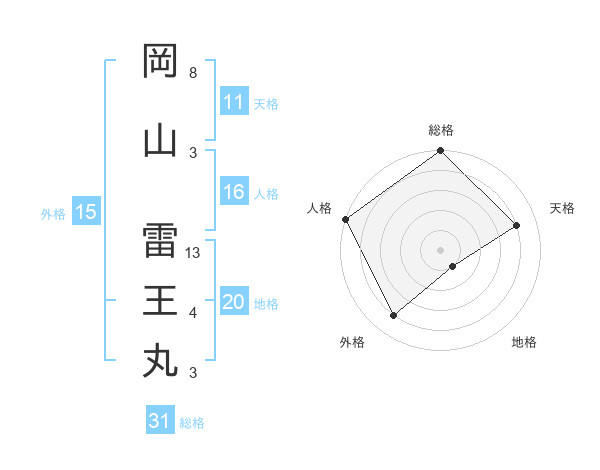 岡山 雷王丸さんの総格は31画の5点