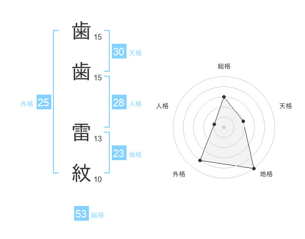 歯歯 雷紋さんの総格は53画の3点!
