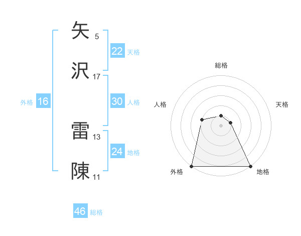 矢沢 雷陳さんを姓名の画数から五運を鑑定