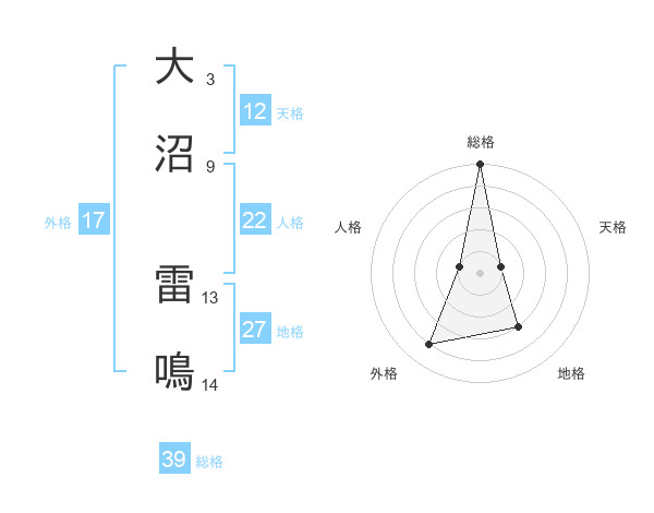 大沼 雷鳴さんを姓名の画数から五運を鑑定