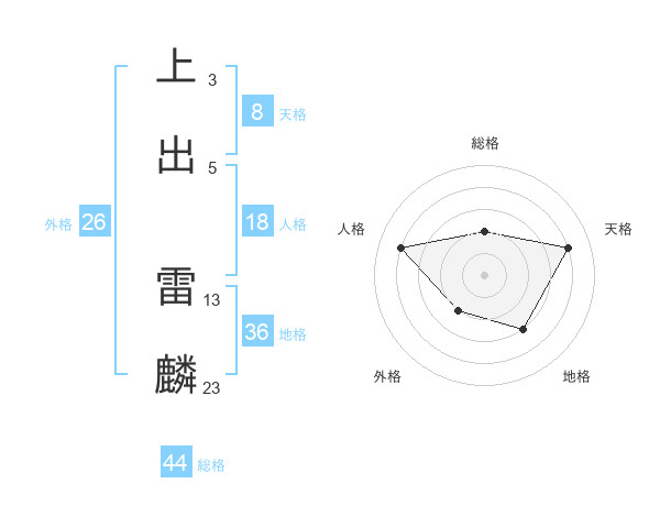 上出 雷麟さんの総格は44画の2点!