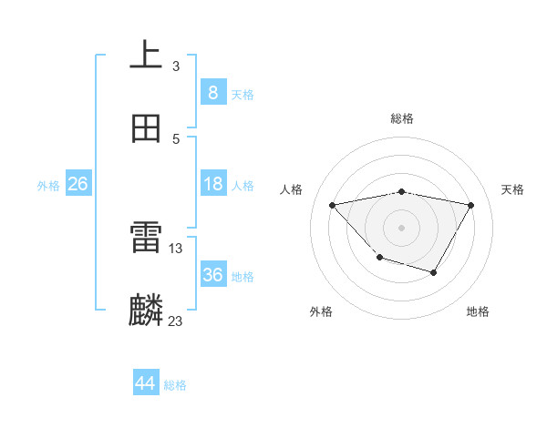 上田 雷麟さんを姓名の画数から五運を鑑定