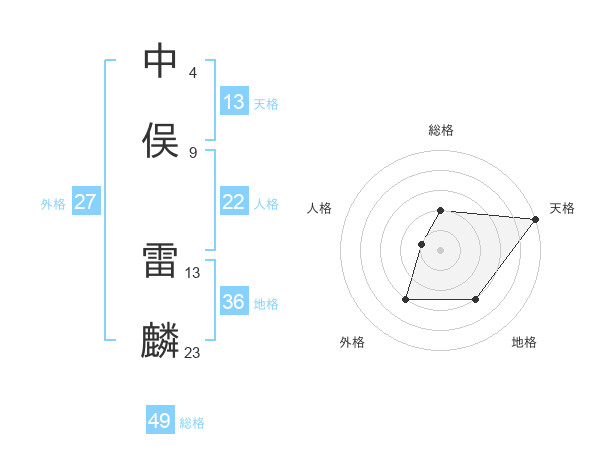 中俣 雷麟さんを姓名の画数から五運を鑑定