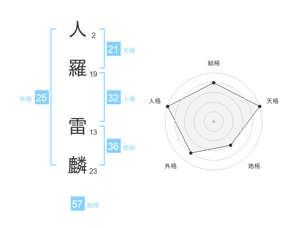 人羅 雷麟さんを姓名の画数から五運を鑑定