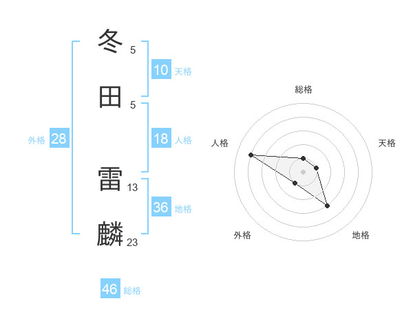 冬田 雷麟さんを姓名の画数から五運を鑑定