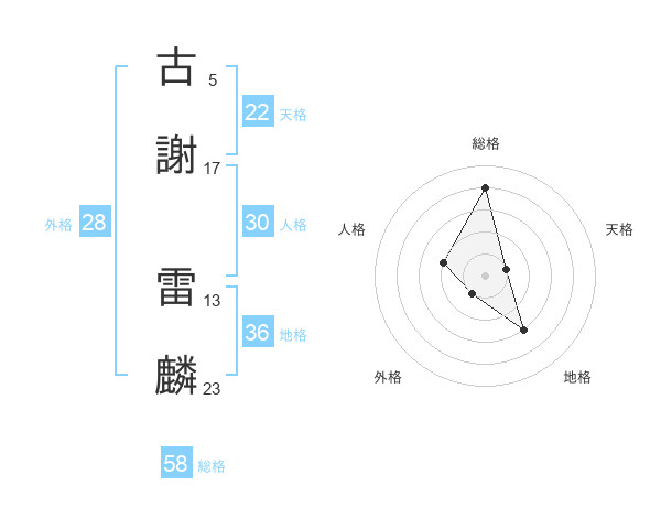 古謝 雷麟さんを姓名の画数から五運を鑑定