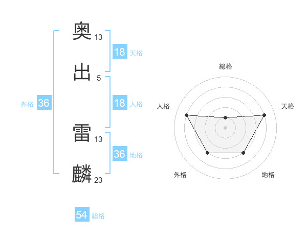奥出 雷麟さんを姓名の画数から五運を鑑定