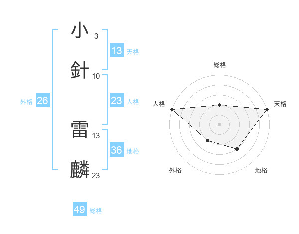 小針 雷麟さんの天格は13画の5点!