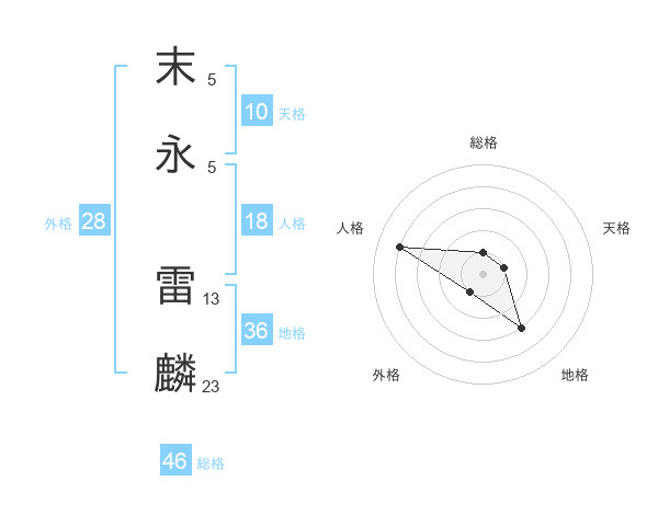 末永 雷麟さんの総格は46画の1点!