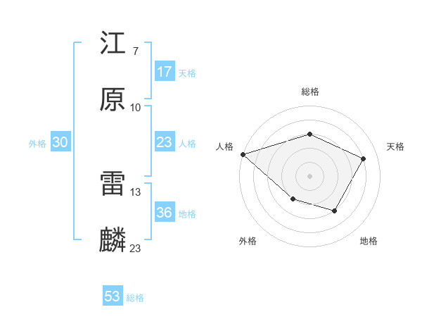 江原 雷麟さんの総格は53画の3点!