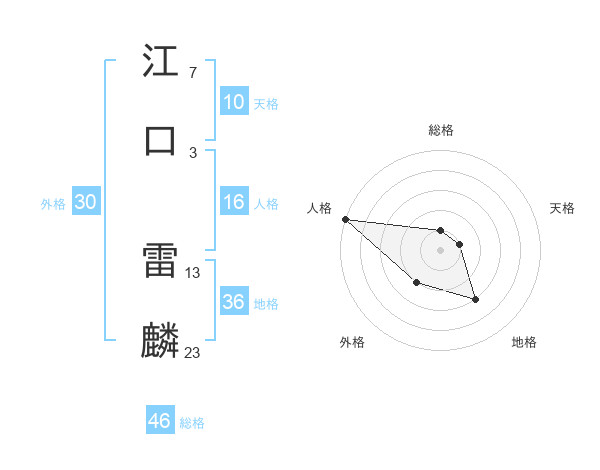 江口 雷麟さんの総格は46画の1点!