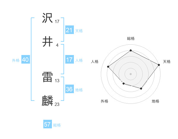 沢井 雷麟さんの総格は57画の4点!