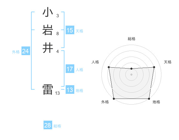 小岩井 雷さんの総格は28画の1点!