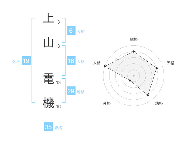 上山 電機さんの総格は35画の4点!