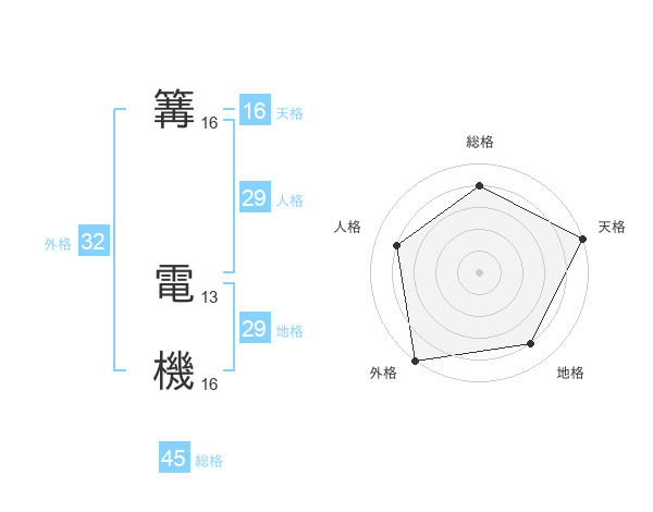 篝 電機さんの地格は29画の4点!