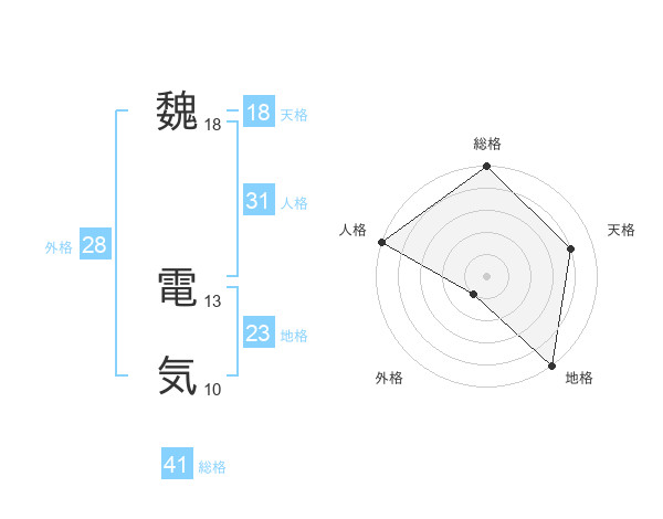 魏 電気さんの総格は41画の5点!