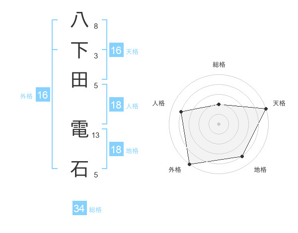 八下田 電石さんの天格は16画の5点!