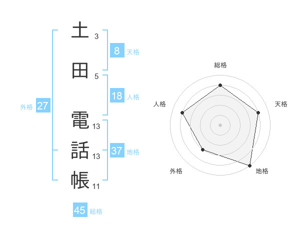 土田 電話帳さんの総格は45画の4点
