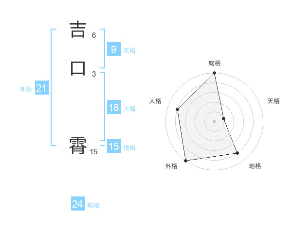 吉口 霄さんの総格は24画の5点!