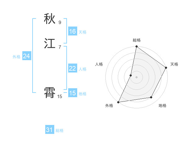 秋江 霄さんの総格は31画の5点!