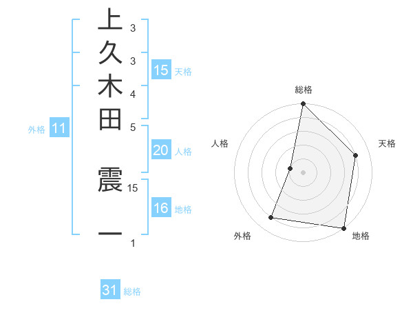上久木田 震一さんの総格は31画の5点!