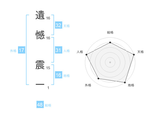 遺憾 震一さんの地格は16画の5点!