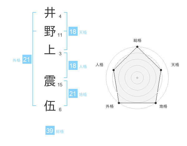井野上 震伍さんを姓名の画数から五運を鑑定