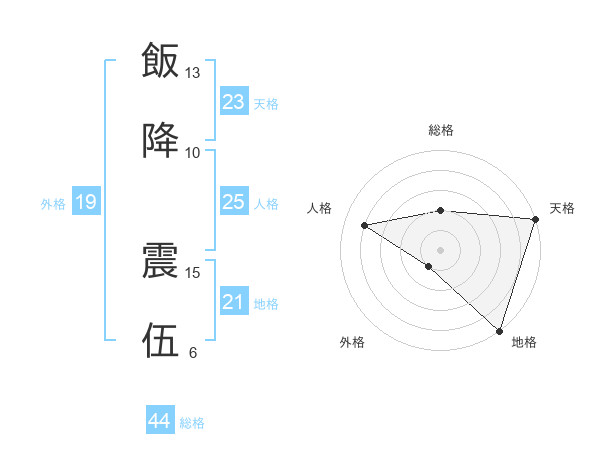 飯降 震伍さんを姓名の画数から五運を鑑定