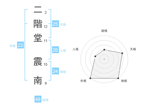 二階堂 震南さんを姓名の画数から五運を鑑定