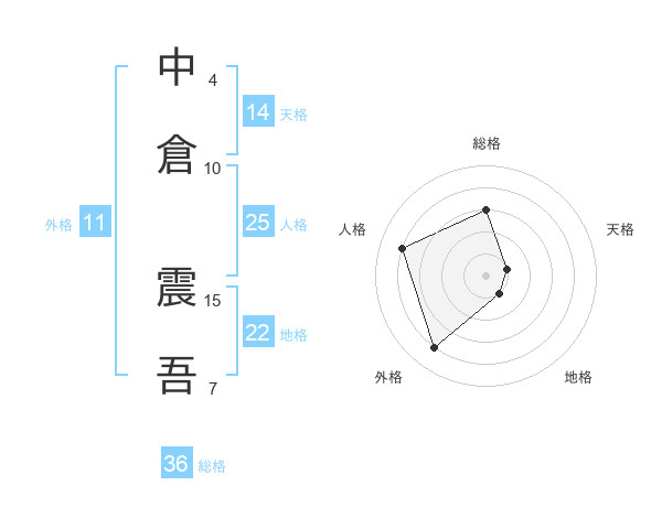 中倉 震吾さんを姓名の画数から五運を鑑定