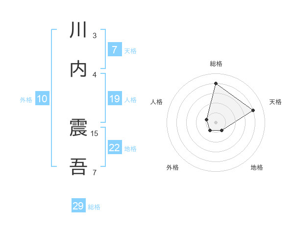 川内 震吾さんの総格は29画の4点!