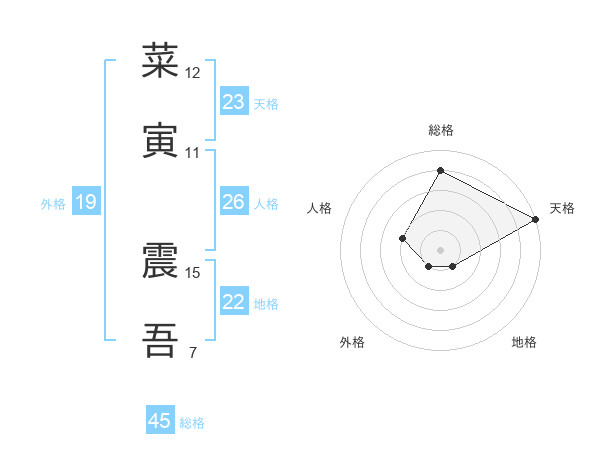 菜寅 震吾さんの総格は45画の4点!