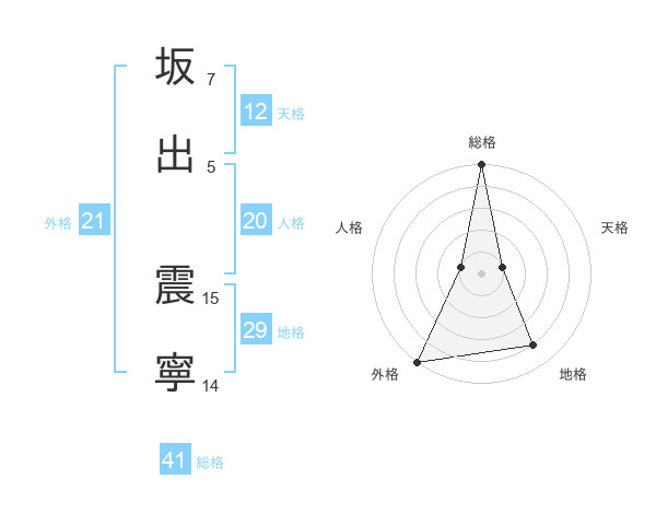 坂出 震寧さんを姓名の画数から五運を鑑定