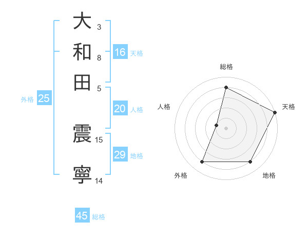 大和田 震寧さんの総格は45画の4点!