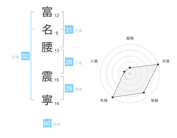 富名腰 震寧さんを姓名の画数から五運を鑑定