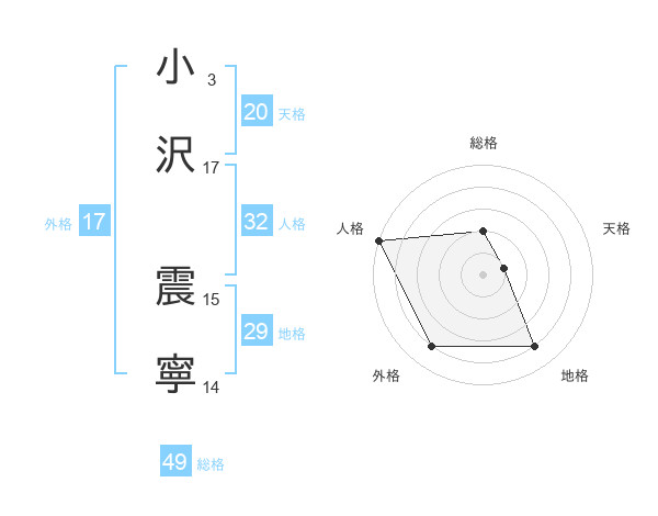 小沢 震寧さんの外格は17画の4点!