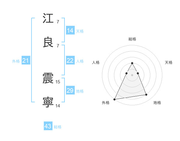 江良 震寧さんの外格は21画の5点!