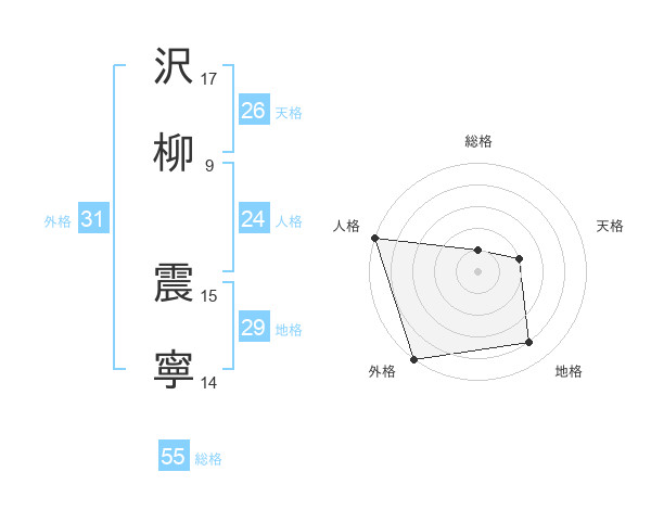 沢柳 震寧さんを姓名の画数から五運を鑑定