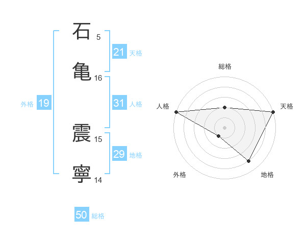 石亀 震寧さんの総格は50画の2点!