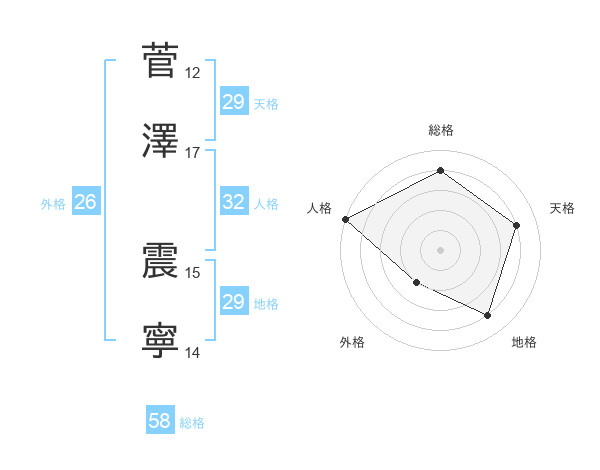 菅澤 震寧さんを姓名の画数から五運を鑑定